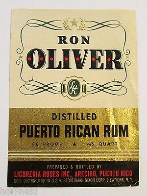 Title (ebay affiliate link): VINTAGE RUM LABEL / RON OLIVER / ARECIBO PUERTO RICO / UNUSED