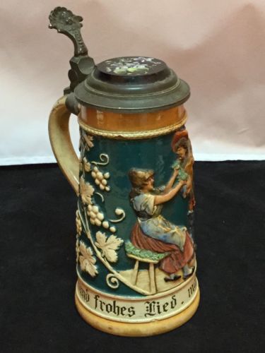 Title (ebay affiliate link): Awesome Authentic Vintage Ceramic German Beer Stein with Metal Lid Hand Painted