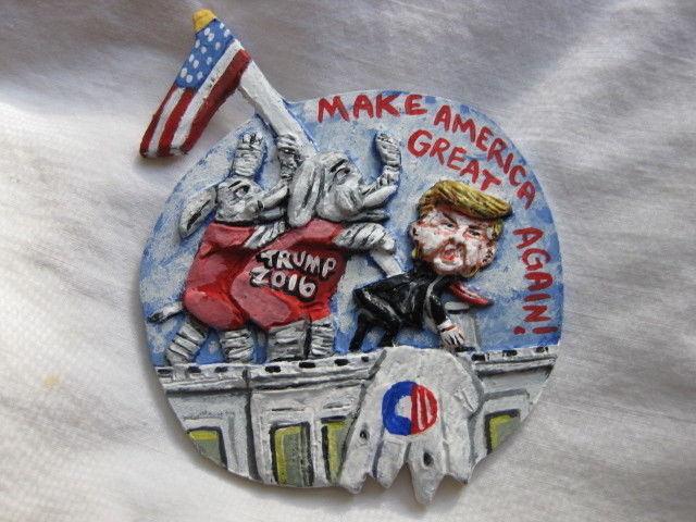Title (ebay affiliate link): Donald Trump Raising Am. Flag over Obama Logo 2016 Presidential Campaign Novelty