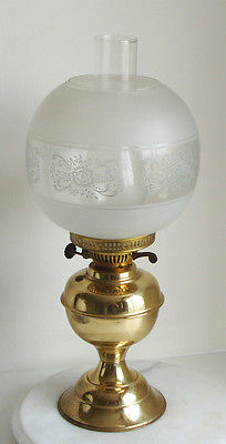 Vintage etched glass Brass Oil Lamp