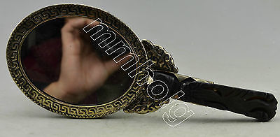 Collectible Decorated Old Handwork Silver Plate Copper Dragon Phoenix Mirror