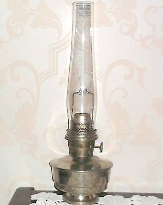 VINTAGE ALADDIN OIL LAMP CHROME BASE GLASS CHIMNEY 19.5" HIGH