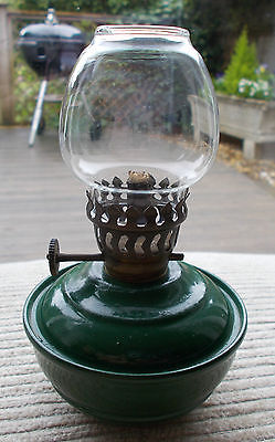 VINTAGE SMALL GREEN ENAMEL NURSERY KELLY PIXIE PARAFFIN OIL LAMP