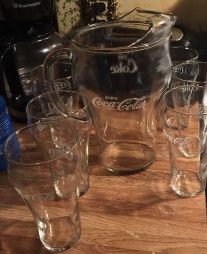 Title (ebay affiliate link): COCA COLA GLASS PITCHER AND 6 DRINKING GLASSES