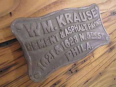 Antique Vintage Brass Advertising Plaque Phila PA Industrial Badge Wm. Krause