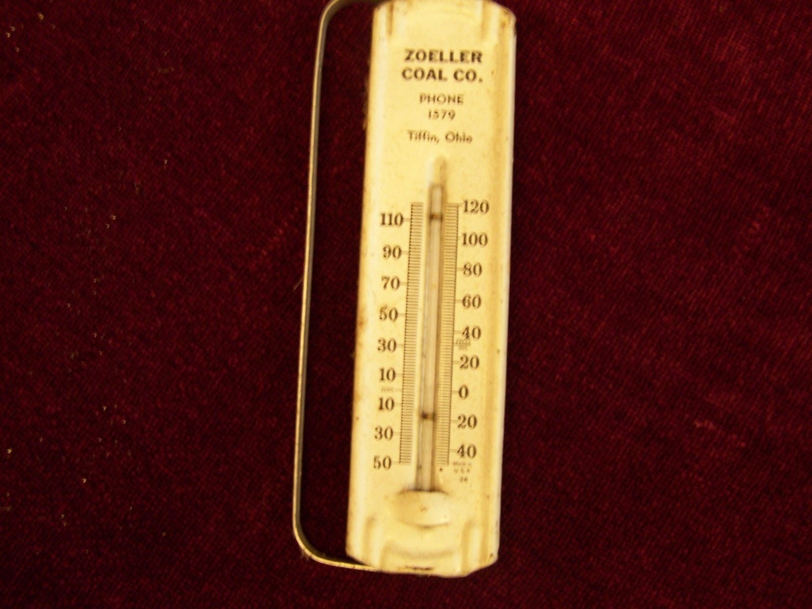 Zoeller Coal Co. Tiffin, Ohio vintage metal thermometer