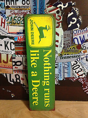 NOTHING RUNS LIKE A JOHN DEERE EMBOSSED METAL SIGN JD SALES SERVICE DEALER SHOP