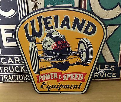 WEIAND POWER & SPEED EMBOSSED METAL SIGN,FORD CHEVY DODGE GARAGE MAN CAVE