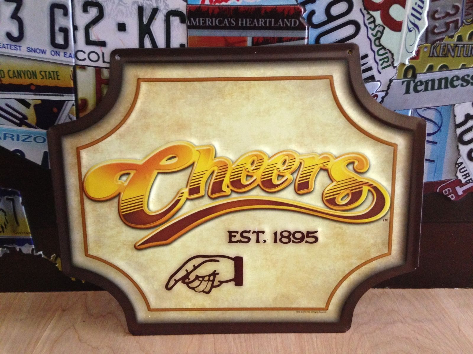 Title (ebay affiliate link): CHEERS CLASSIC USA TV SHOW EMBOSSED ALL RAISED LETTERING METAL SIGN SHOP GARAGE