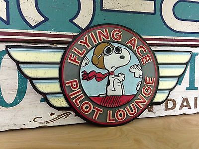 FLYING ACE PILOT LOUNGE AVIATOR SNOOPY DOG CHARLIE BROWN EMBOSSED METAL SIGN...
