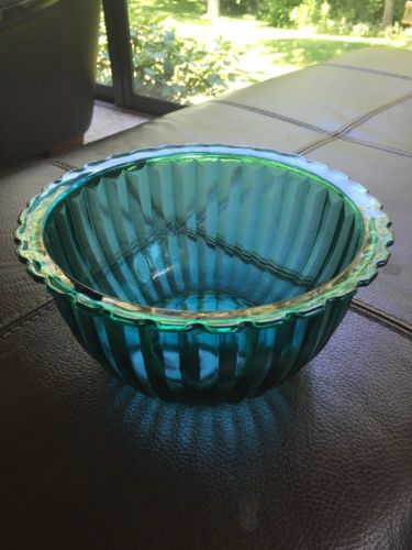 Title (ebay affiliate link): Jeannette Ultramarine 8 Inch Swirl Glass Bowl Green Glass