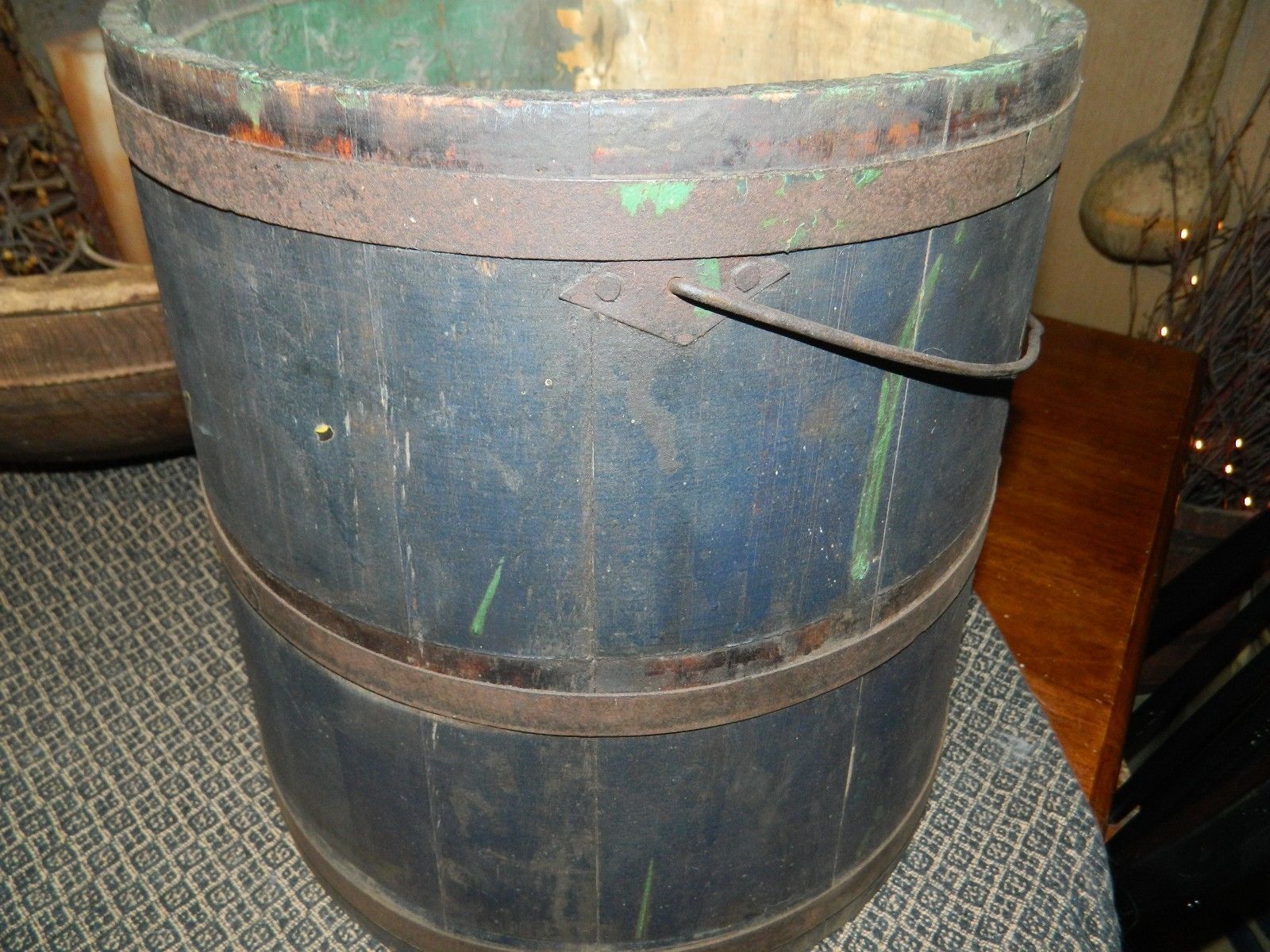 Title (ebay affiliate link): Old Antique Wood Original Blue Paint Bucket Pail Firkin