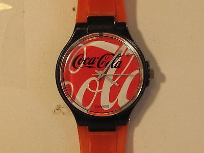 VINTAGE COKE COLA QUARTZ WATCH/RED/BLACK LOGO/GOOD COND/KEEPS TIME/SWISS MADE.