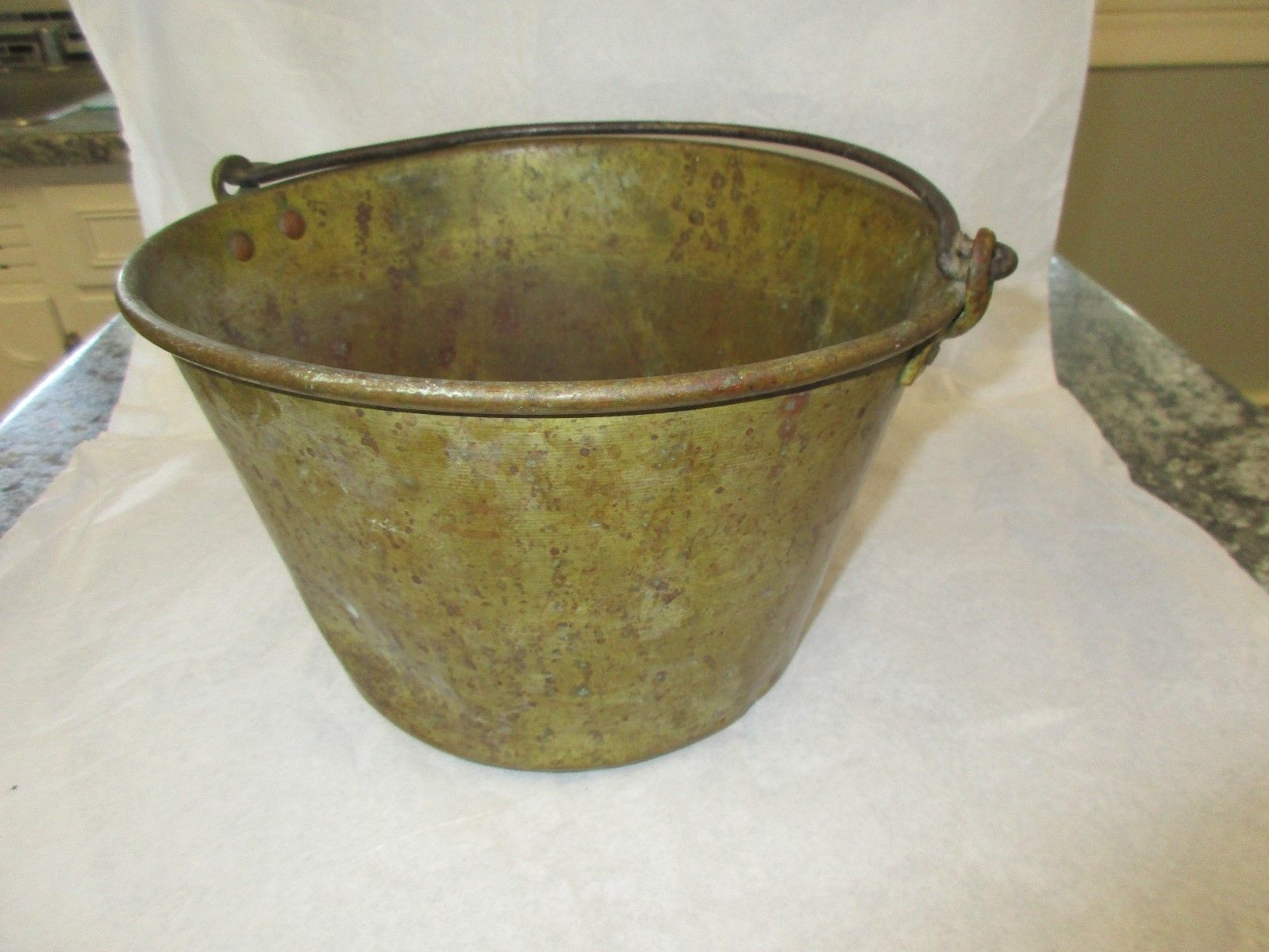 Antique BRASS 9" PAIL BUCKET w/ Handle, Lovely natural patina