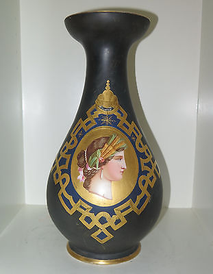 ANTIQUE BEAUTIFUL LARGE HAND PAINTED PORCELAIN PORTRAIT VASE VOLKMAR SIGNED