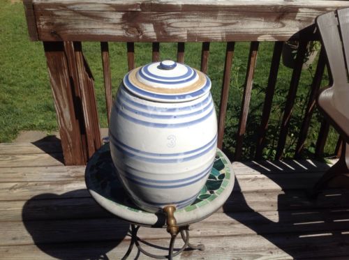 Antique No. 3 Blue Decorated Stoneware Ice Water Cooler