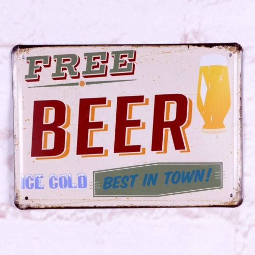Title (ebay affiliate link): Metal Tin Sign Free Beer Ice Cold Best In Town Retro Pub Bar Wall Decor