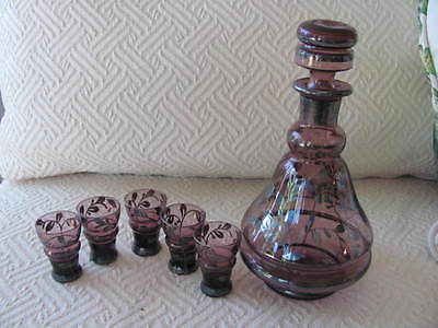 VINTAGE CORDIAL SET AMETHYST GLASS STERLING OVERLAY