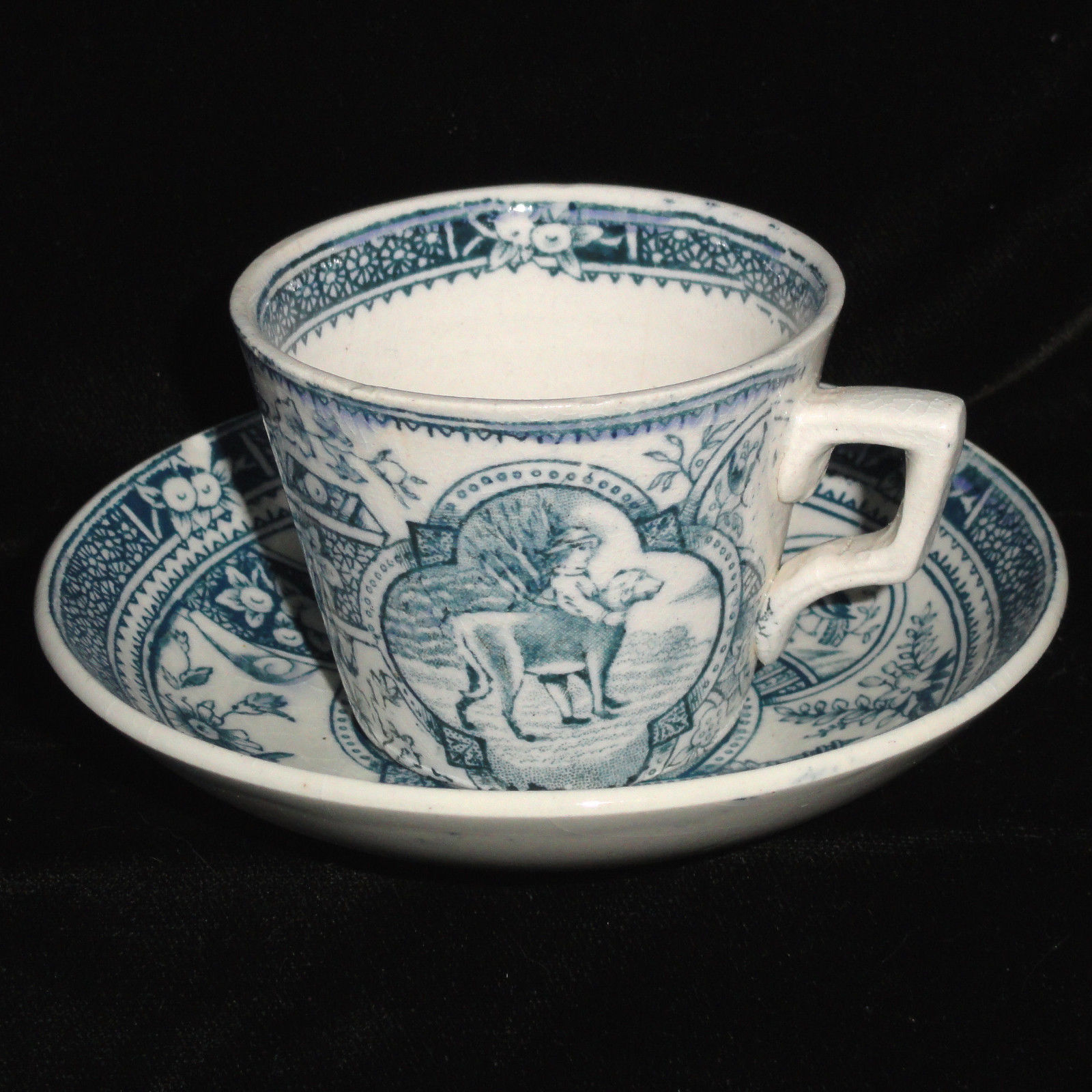 Little Mae Childs Marine Blue 2pc Tea Set Newfy Dog Allerton Staffordshire 1880