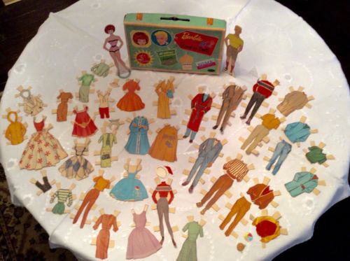 Title (ebay affiliate link): Vintage 1962 Barbie Ken Traveling Stand-up Paper Dolls & Case - Near Complete!