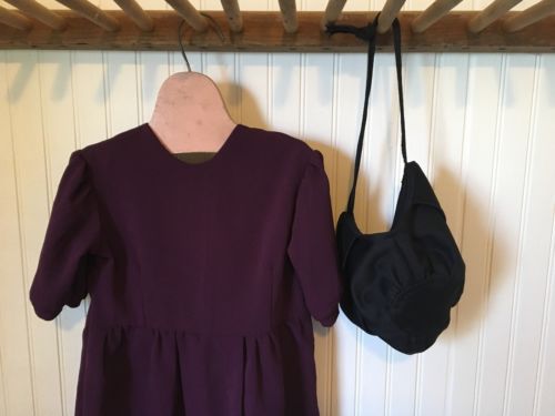 Title (ebay affiliate link): Moprimitivepast Vintage Ish Amish Girls Black Bonnet & Purple Dress Peg rack