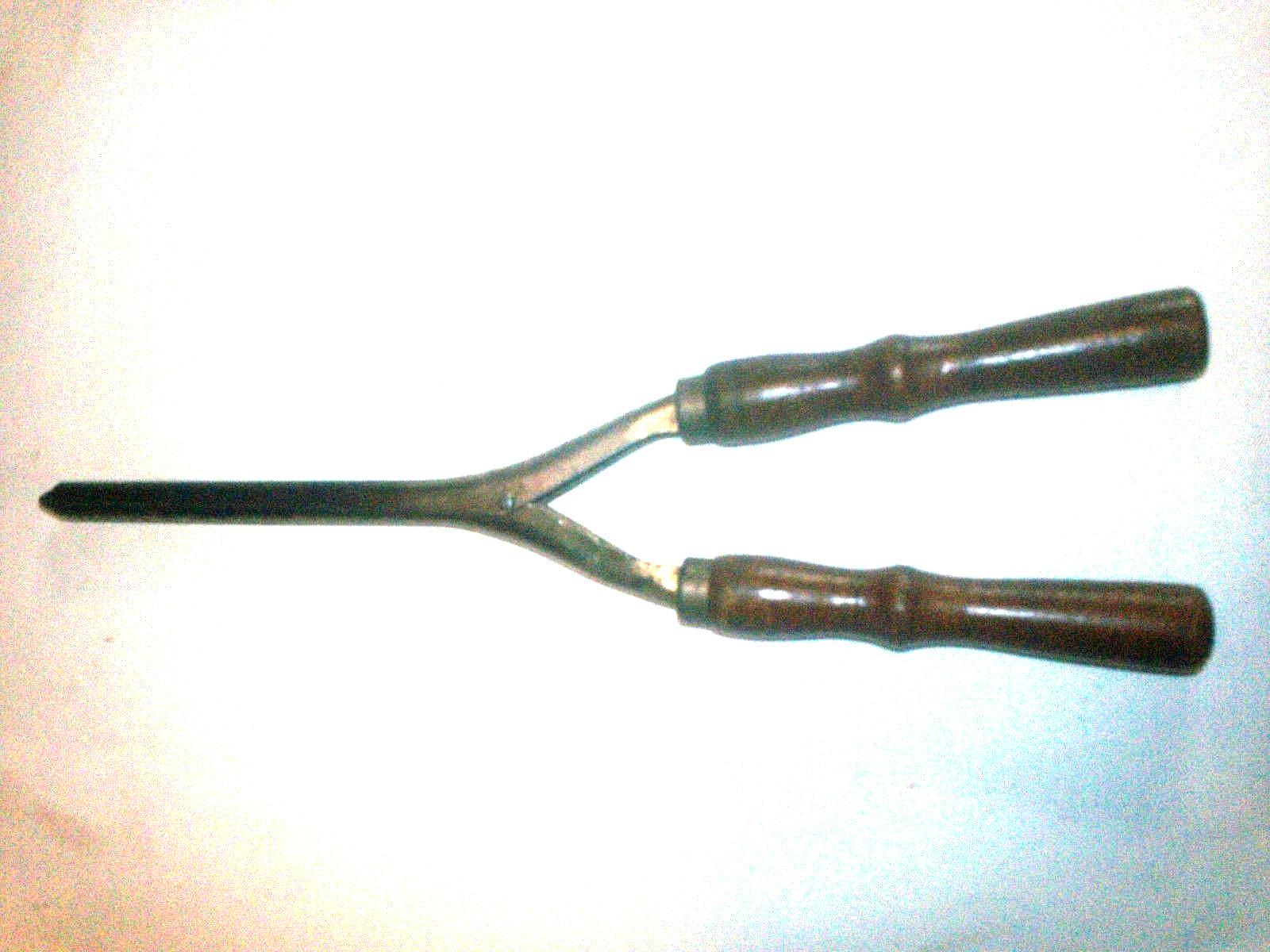 VTG HAIR STYLING METAL CURLING IRON MUSTACHE CURLER WOOD HANDLES STOVETOP HEAT