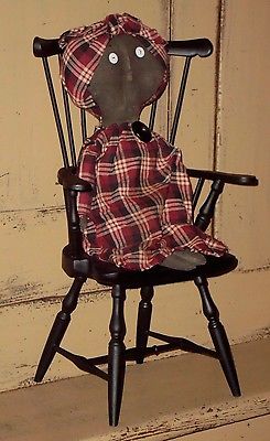 Title (ebay affiliate link): primitive decor ~ 15" black mammy doll & colonial Windsor style wooden chair
