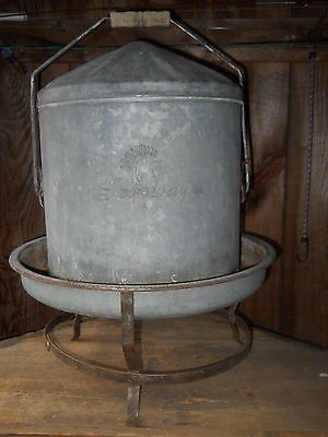 Title (ebay affiliate link): ANTIQUE GALVANIZED CHICKEN WATERER SAVEWAY DECOR PRIMITIVE W/STAND