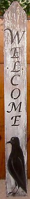 *~*PRIMITIVE*~*HP FOLK ART PRIM SIGN * "WELCOME" * CROW * OLD RECLAIMED WOOD