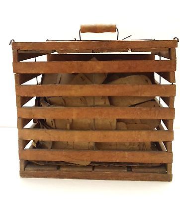 Antique Wood Chicken Hen Egg Crate Wooden Carrier Carry11" Holder Farm Barn Coop