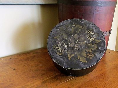 Antique Pantry Box Floral Design Hand Painted Black Bentwood Trinket Spice Box