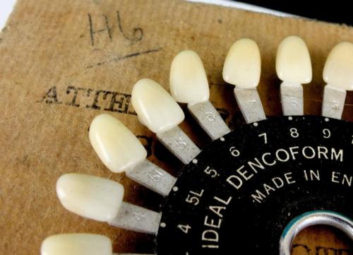 Title (ebay affiliate link): c.1930 Unusual Ideal Dencoform Teeth Shades Gauge by The Dental Mfg Co England