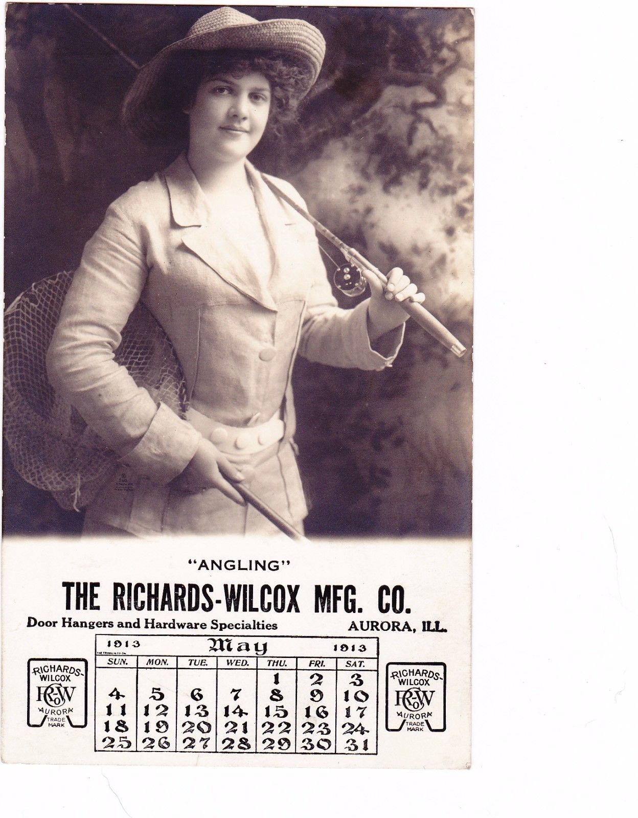 Angling Richards-Wilcox MFG Door Hardware Real Photo Postcard Lady Fishing Pole