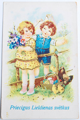 Title (ebay affiliate link): Antique Vintage Greeting postcard card Easter, children 1930