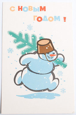 Title (ebay affiliate link): Vintage postcard Christmas New Year card 1970 Tree Snow man Russia USSR