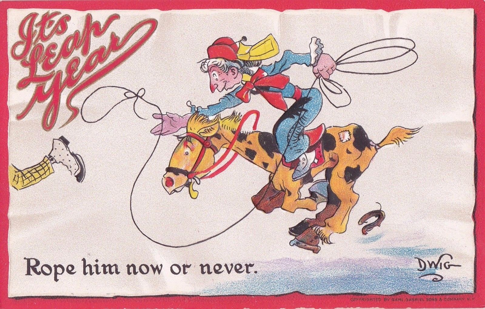 Title (ebay affiliate link): Signed DWIG Leap Year Postcard Vintage Comic Sam Gabriel Series #401 Rope Him
