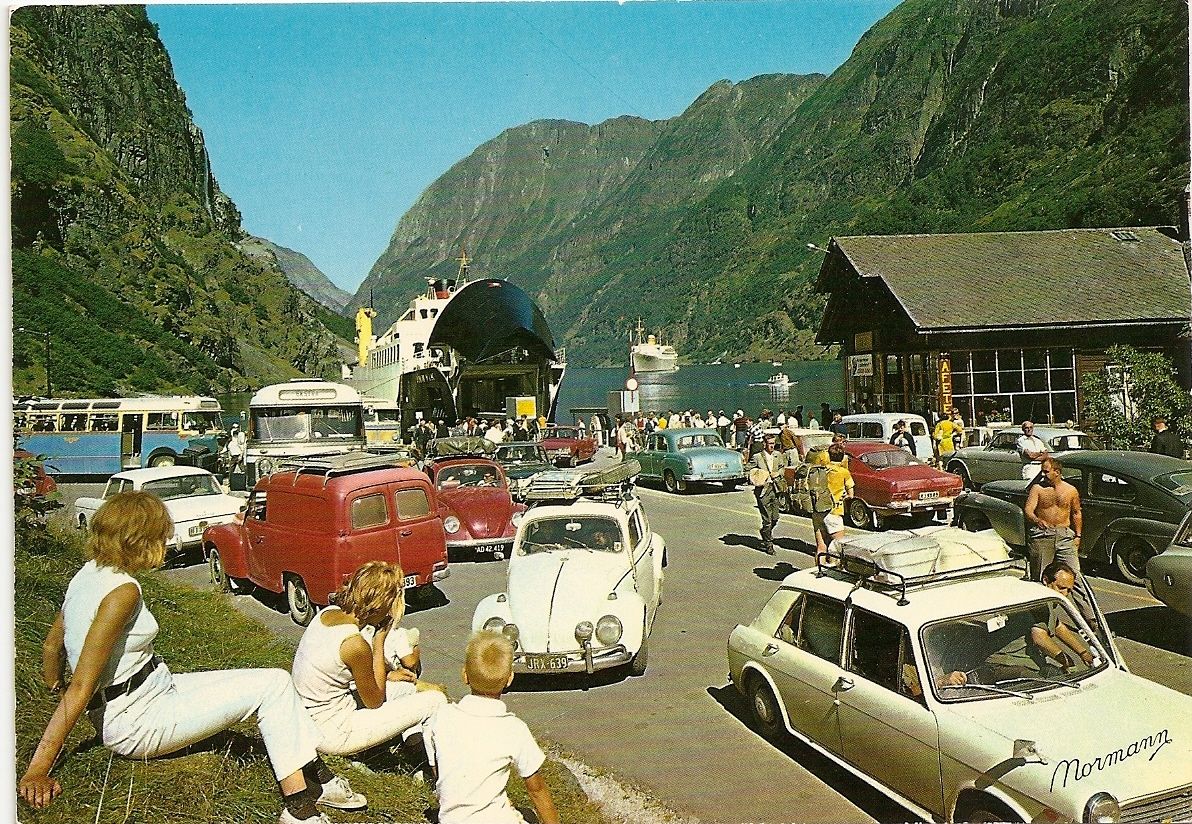 Title (ebay affiliate link): Gudvangen, Naeroyfjord, ferry landing bus cars vw bug Norway Postcard