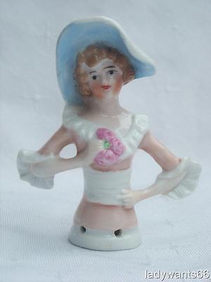 ANTIQUE GERMAN PORCLEAIN PRETTY LADY PIN CUSHION HALF DOLL