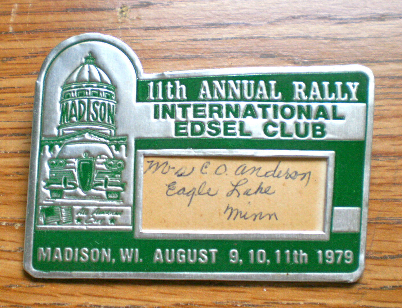 Cool 1979 11th Annual Rally International Edsel Club Madison Wisc. Aluminum Foil