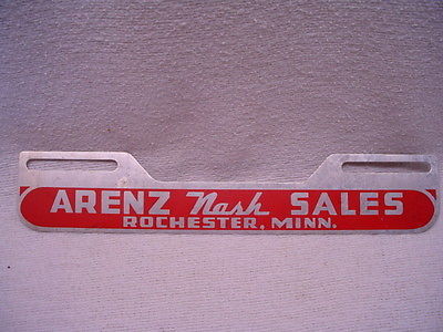 Title (ebay affiliate link): ~ Vtg 1953-56 ARENZ NASH SALES AUTO DEALER ROCHESTER MN LICENSE PLATE TOPPER