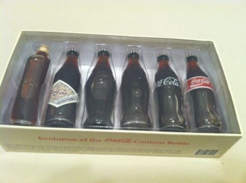 Title (ebay affiliate link): *6 Miniature 3" Evolution of the Coca Cola Contour Bottle Mini Glass Coke Bottle