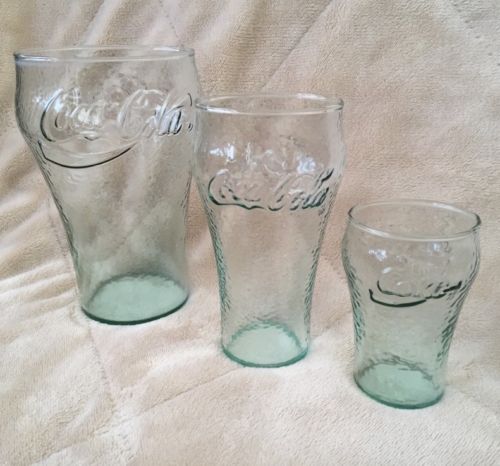 Title (ebay affiliate link): Lot 3 Coca Cola Coke Soda Green Glasses Pebble Texture Raised Letter Fountain