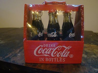 Title (ebay affiliate link): Coca-Cola mini six pack. wood case w six little bottle. ornaments. collectable