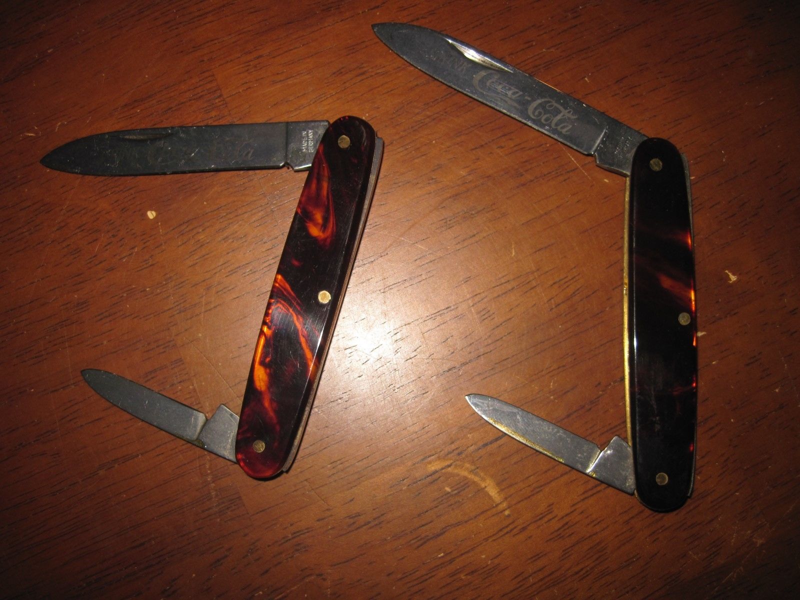 Title (ebay affiliate link): Two Coca-Cola Made in Germany 3 1/4" long Folding Pocket Knives