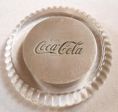 Vintage Coca Cola Advertising Paperweight - Glass & Pewter