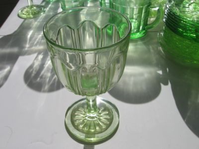Title (ebay affiliate link): Dpression glass Green water Goblet 8oz,Knife & Fork