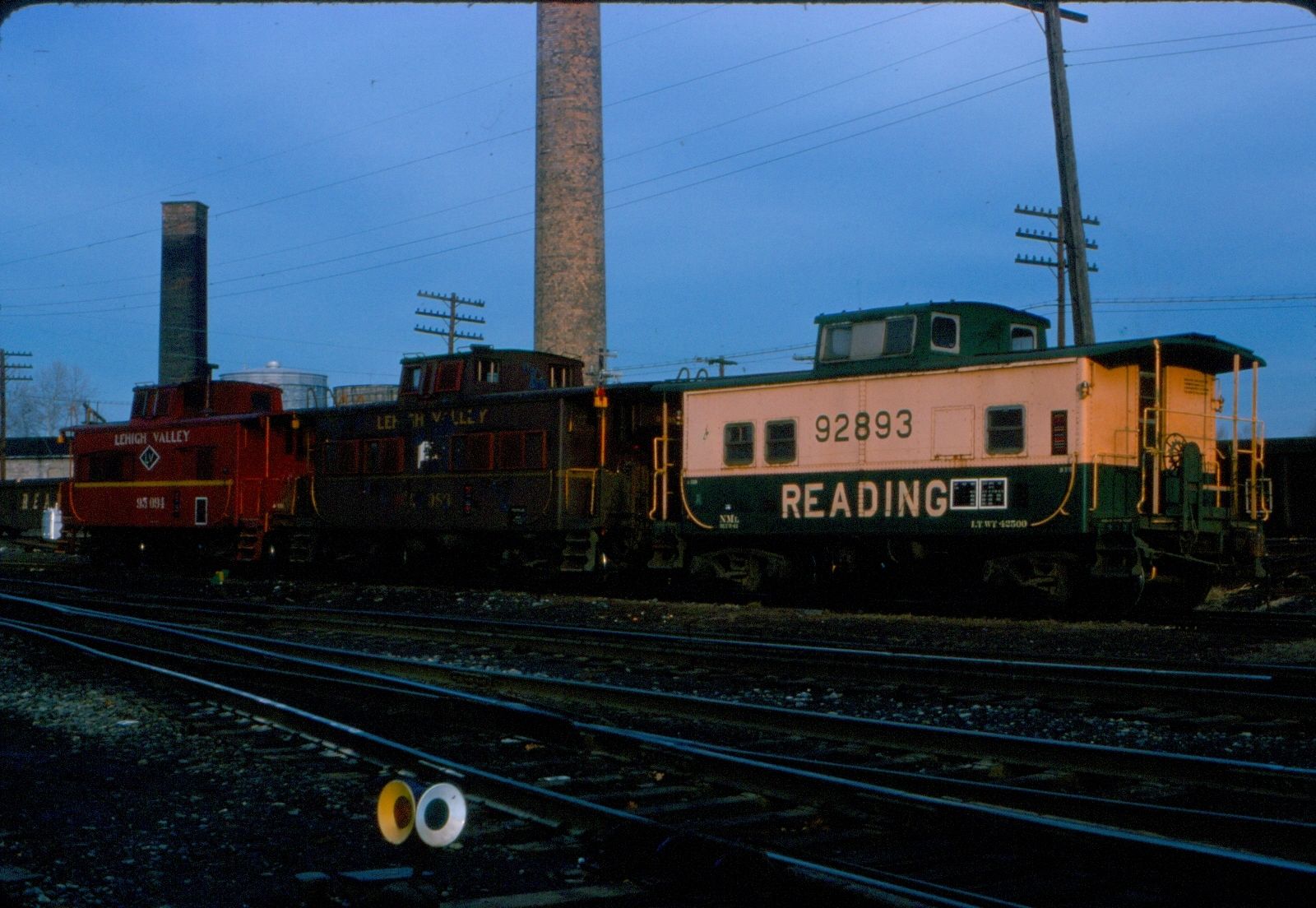 Title (ebay affiliate link): 35mm Orig Slide LV RR Cabooses #95094-95083 & Reading #92893 Allentown PA 1975