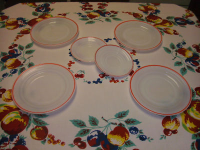 Lovely OLD Moderntone RED Striped Dishes Lot