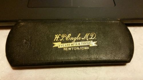 Vtg eyeglasses case H P ENGLE M D Ear Eyes Nose Throat NEWTON IA leather velvet