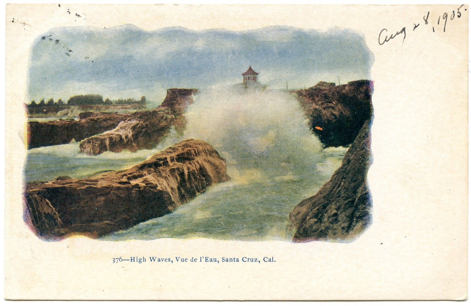 B3838 High Waves, Vue de L'Eau Santa Cruz CA Antique Undivided Back UDB Postcard